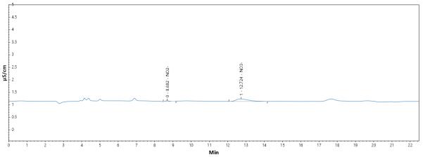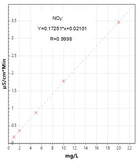 4.亞硝酸鹽及硝酸鹽測(cè)試曲線譜圖詳見(jiàn)圖3-1、3-2,標(biāo)準(zhǔn)樣品譜圖及實(shí)際樣品加標(biāo)測(cè)試的譜圖見(jiàn)圖4-1、4-2。